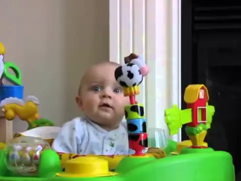 La première, il s’agit d’un bébé de 5,5 mois dont la vidéo a déjà été consultée plus de 9 millions de fois ! Il a une expression faciale qui est hallucinante 😀